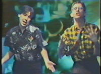 During the height of Bovine Ignition Systems, Jeremy and I got into various ideas for video projects and perhaps shooting a music video of some sort. After all, it was 1987 and MTV ruled the planet. Any self-respecting band needed a video. But how would we afford one? The answer came when we found a "shoot your own video" place had opened up at the Galleria mall in White Plains. This was a straight Impulse Buy kind of operation, obviously intended for the locals to record themselves singing over some stilted Huey Lewis and the News or Madonna tracks, then video record themselves singing while sunsets showed in the backgrounds. But Jeremy and I saw it another way: an entirely cheap and easy way to record our big music video breakthrough.We talked with the guys running the video place and asked if we could provide our own music; they said sure. We asked if we could provide the videotape for the background images; they said sure. We asked what the length of a video could be; they said up to six minutes. And how much would this all cost us? $50.