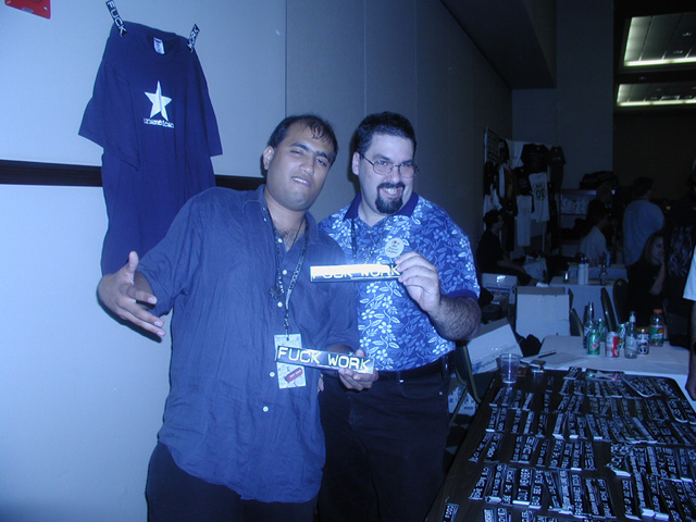 | sirini.jpg | 124108 | Jason Scott and !Sirini of UNAMERICAN.COM. Note "Fuck Work" stickers. |