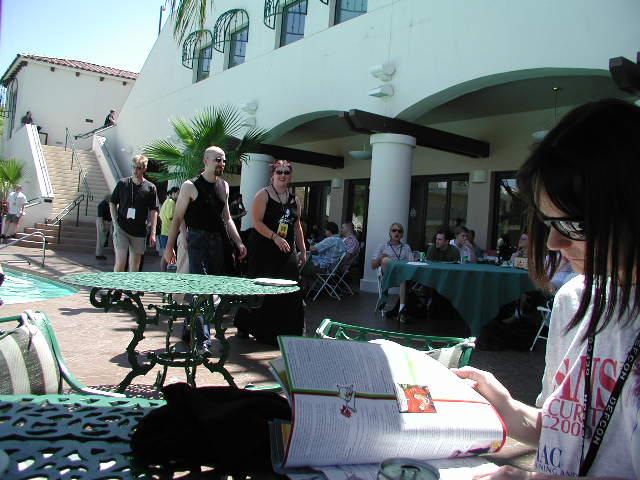 | P1010019.JPG | 60372 | Polly gets photo taken unknowingly. Behind her, entrance to con. |