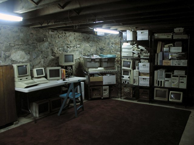 Almost immediately, after arranging my office and getting the bills and mortgage straightened out, I set into motion the process of building some sort of hosting facility in the basement. While I know I could never hope to measure up to a professional company, I know I could come up with something reasonable to host a small amount of folks along with myself on the network. I have about 7 years of experience with working in datacenters, and I know what works and what doesn't. I also know what I personally could fulfill and what I couldn't hope to provide in a million years. I cleaned out the basement, plotted where to put racks, and began putting my own machines up to prove the whole system can work. Opportunity Knocks Finally, I found a deal that made it worth it... I found out I could get a 3mbit connection to the house for $500 a month. It doesn't get much better than that in the current Internet connectivity world, without giving up an awful lot of control to your upstream provider. So I'm in great shape, right? Well, yeah, but now I'm setting myself up to be dreadfully poor. That's a lot of money. I can't afford it alone. So I've decided to open up my basement empire to a select group of what are soon to be my best friends in the world. Basically, I'm looking for a few "roommates" to host with me to drive the monthly costs down. These people would host servers with me, do what they want on the pipe, and generally have a great time. Maybe you're going to be one of these people. The Images Here are some (hopefully) informative images of the soon-to-be Data Barn: